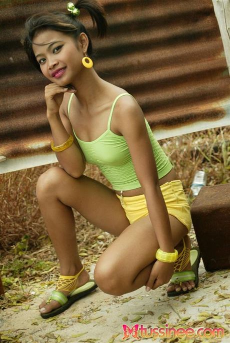 Tussinee: 18 year old Thai teen in pigtails has a little fun outide