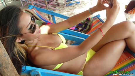 City Invasion: Amateur Asian girl strips and shows her tiny tits and pussy in the park