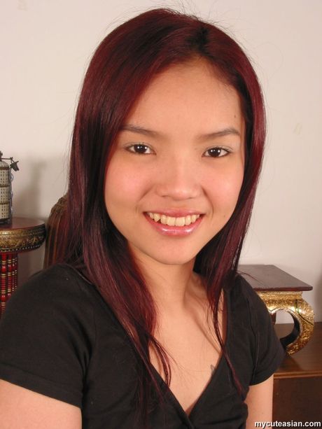 My Cute Asian: Amateur Asian girl with a tiny tits strips and shows her hairy cunt