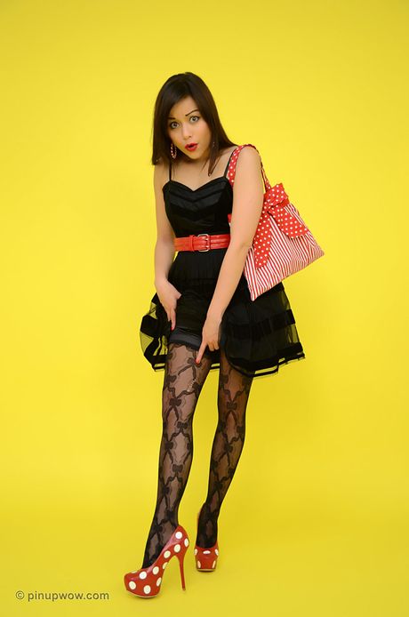 Pin Up Wow: Asian babe Petra shows her amazing boobs and poses in stockings