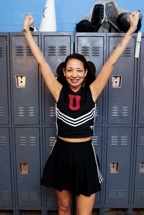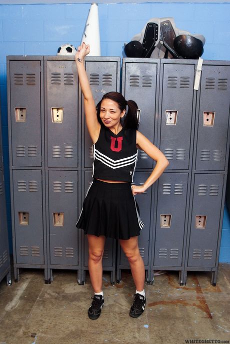 White Ghetto: Asian cheerleader Coco Velvett strips and shows her hot ass and tits