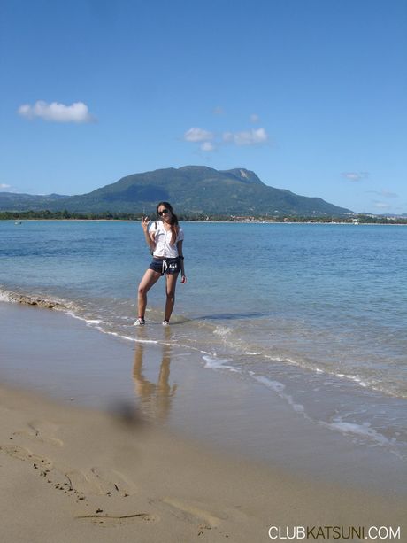 Premium Pass: Asian cougar Katsuni strips off her bikini and highlights her perfect ass on the beach