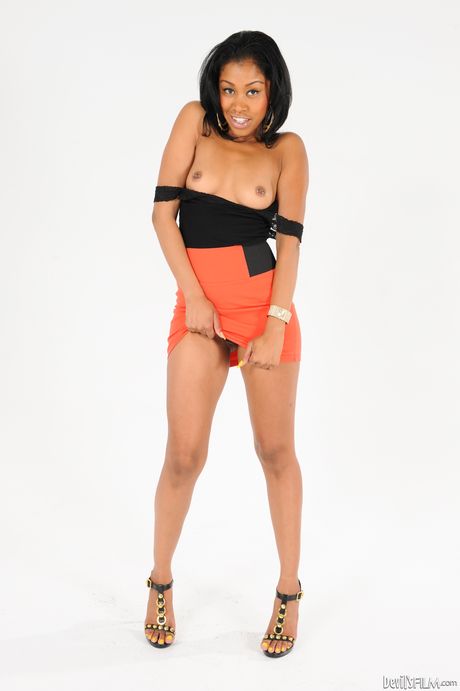 Devils Film: Asian pornstar Yasmine De Leon strips and shows her tiny tits and ass