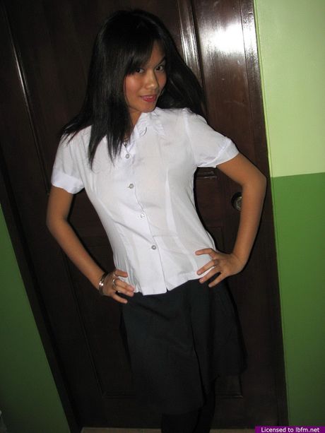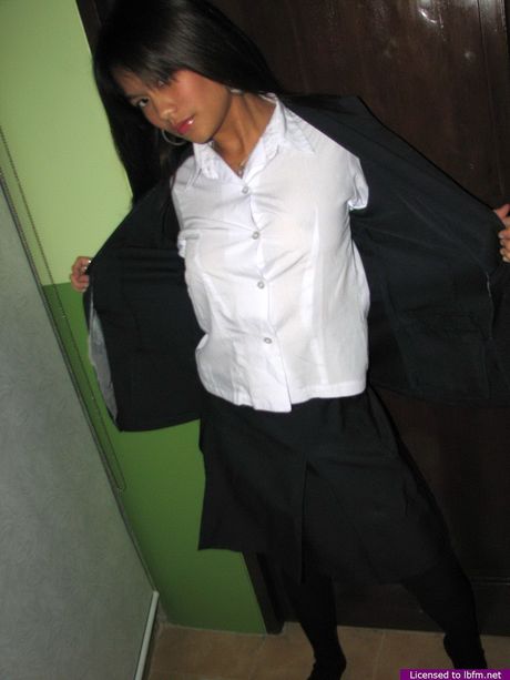 LBFM Addiction: Asian schoolgirl with a tiny tattoo on her ass strips and shows her curves