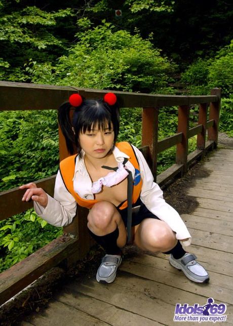 Idols 69: Asian slut in pigtails and uniform shows her hairy pussy and her favorite toys