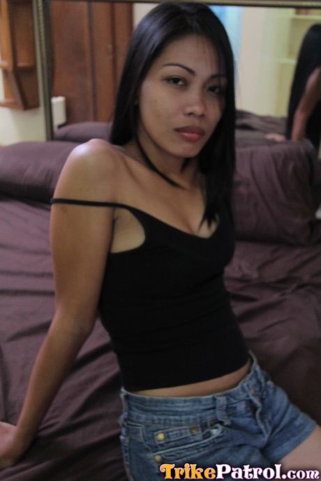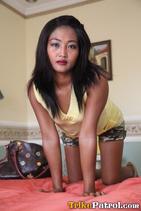 Trike Patrol: Asian teen Analyn strips and shows her hairy cunt and big butt