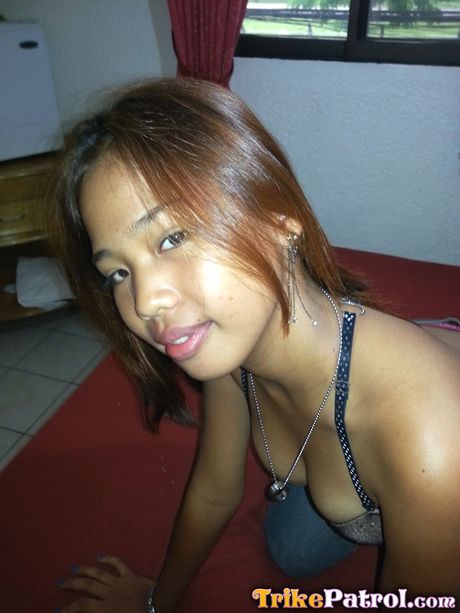 Trike Patrol: Asian teen Angel strips and shows her big melons and shaved pussy