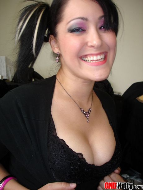 GND Kitty: Asian teen Kitty strips and shows her amazing melons and ass in a solo