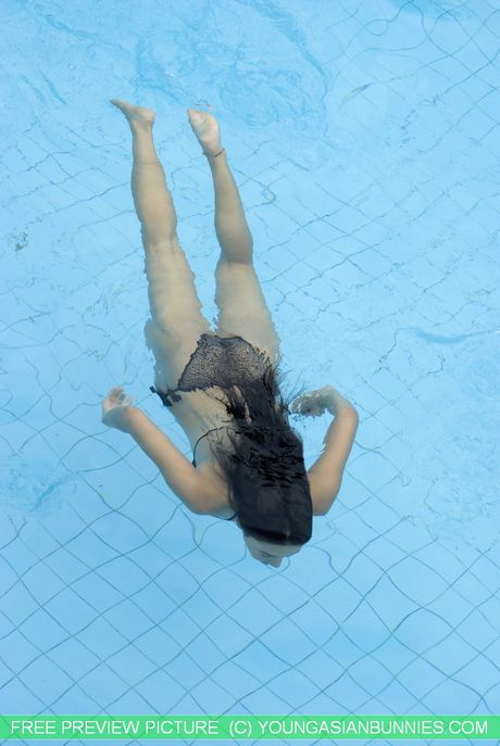 Hot Bunny Promotion: Asian teen Michaela shows her small tits and her hot ass in a pool
