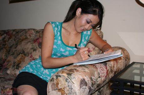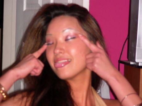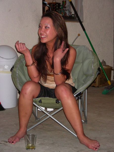 Matts Models: Asian teen Miko strips and shows her hot butt and tits in the backyard