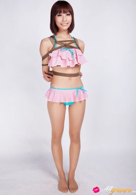 All Gravure: Ayaka Asian babe in tiny lingerie smiles while is tied in ropes