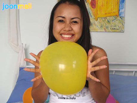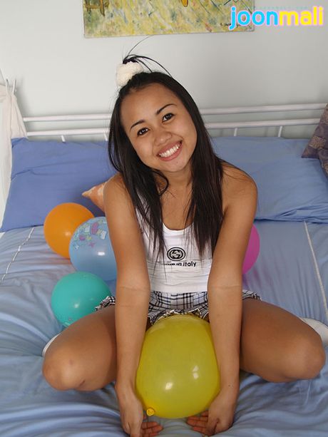 Joon Mali: Balloon popping Asian teen Joon Mali shows white panties