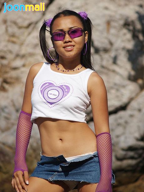 Joon Mali: Barely legal Asian teen shows cameltoe in white panties