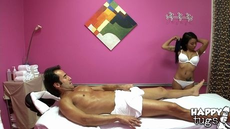Happy Tugs: Curious oriental Mya fucked in her bald pussy after hot cocksucking