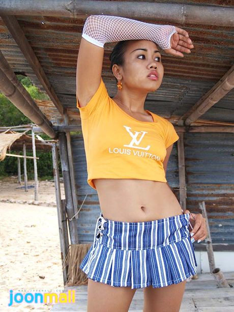 Joon Mali: Foxy Asian teen give an upskirt peek to show petite buns