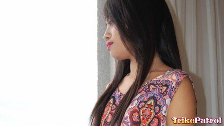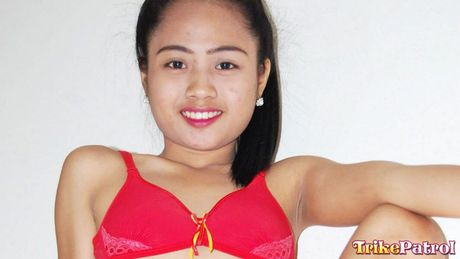 Trike Patrol: Japanese teen strips and shows her hairy pussy up close