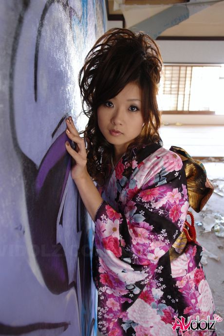 AV Idolz: Perfect Asian babe Chiaki strips and shows her hairy pussy in a solo