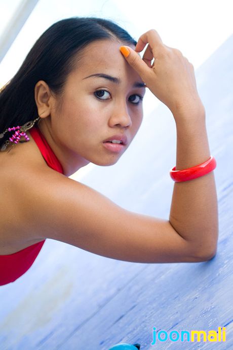 Joon Mali: Petite Asian bubble butt teen Joon Mali in flowered panties