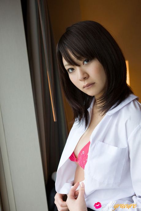 All Gravure: Ran Asian doll takes shirt off and shows fine boobs in red bra