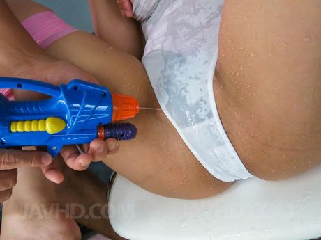 Hairy AV: Ren Azumi Asian has hairy cunt rubbed and fucked with vibrators
