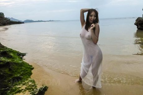 AV 69: Ruka Ichinose busty sucks boner and gets it in snatch on beach