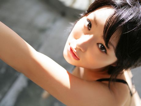 All Gravure: Seductive asian babe with small perky breasts in a pink bikini