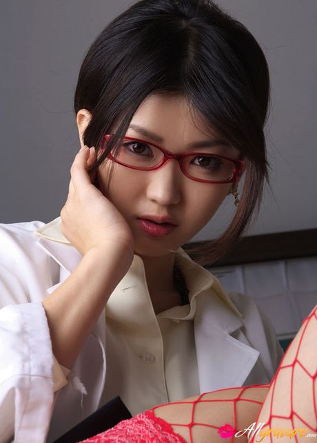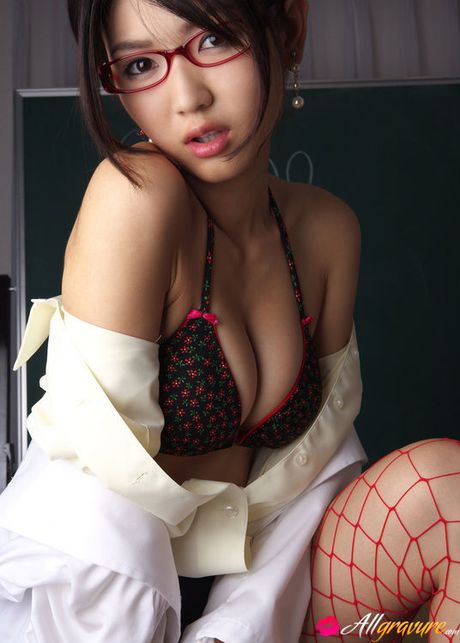 All Gravure: Sexy asian secretary in fish net stockings shows off her boobs