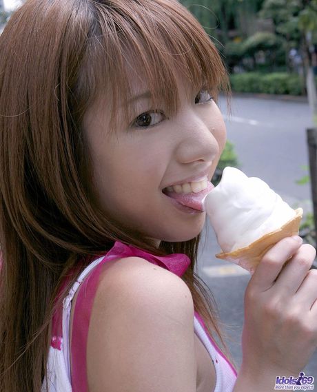 Idols 69: Sexy Asian teen Yuuna strips and shows her tiny tits and ass in a solo