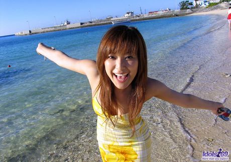 Idols 69: Sexy Japanese mom Yua Aida strips and displays her sexy booty on the beach