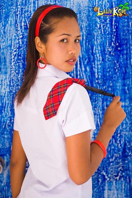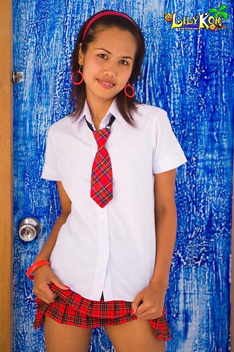 Lily Koh: Sexy teen Lily Koh dressed in red plaid schoolgirl outfit