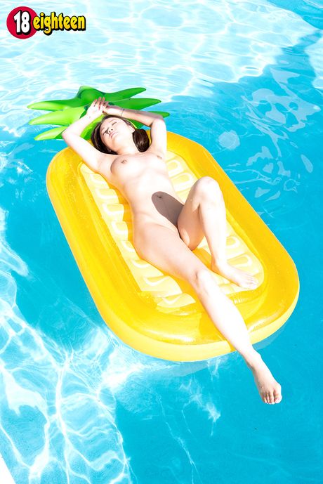 18 Eighteen: Skinny Asian teen Lulu Chu exhibits her tiny tits and ass poolside