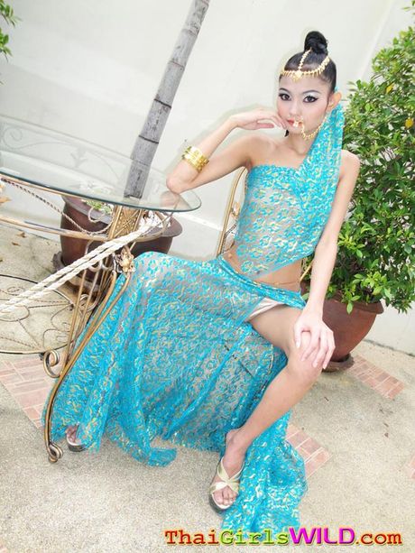 Thai Girls Wild: Skinny Thai girl Eaw stripping outdoors to show off her slender body