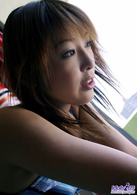 AV Idolz: Stunning Asian babe Ryo Takizawa strips and shows her big butt in the kitchen