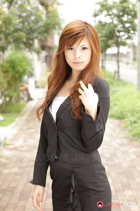 Japan HDV: Stunning redhead office lady Rina Kikukawa posing outdoors with joy
