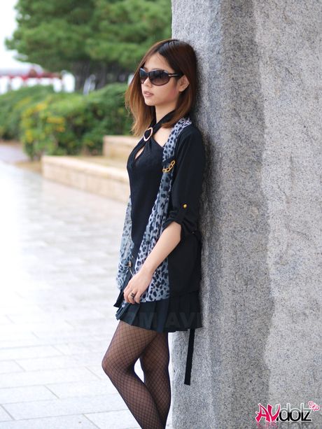 AV Idolz: Superb Asian babe Rena strips to her pantyhose and shows her hairy cunt