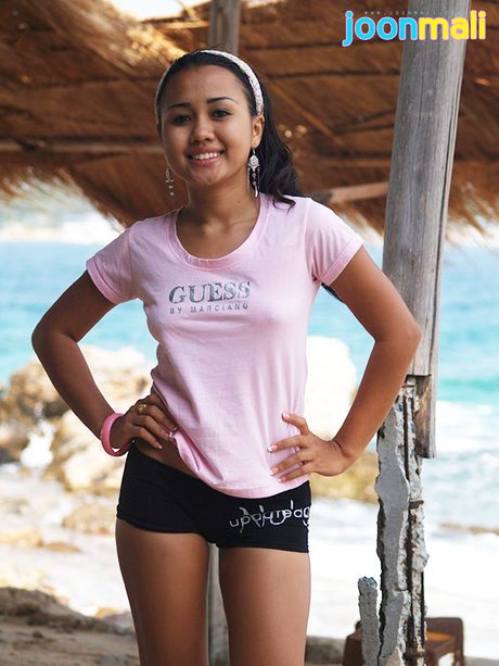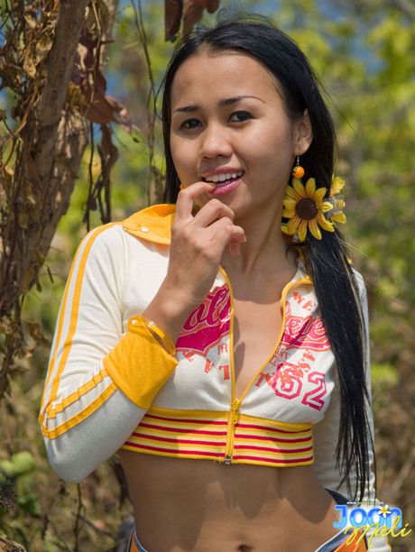 Joon Mali: Sweet Joon Mali lifts her skirt and flashes panties outside