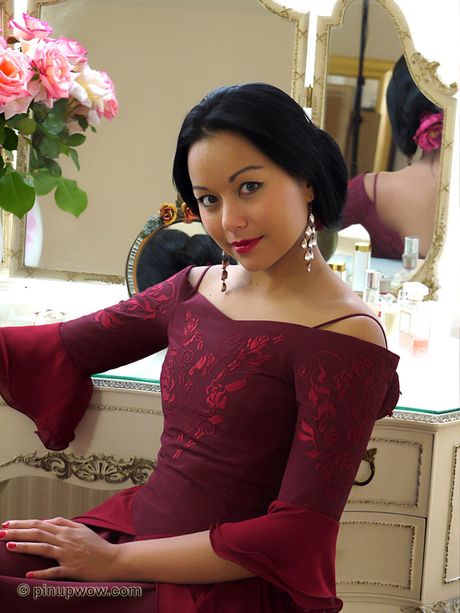 Pin Up Wow: The Asian babe Petra reveals her big boobs and ass in a solo striptease