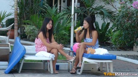 Trike Patrol: The girls take turns riding the dildo and then each others pussies