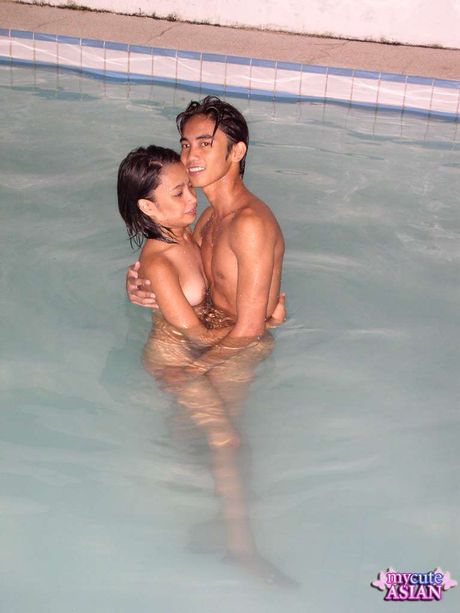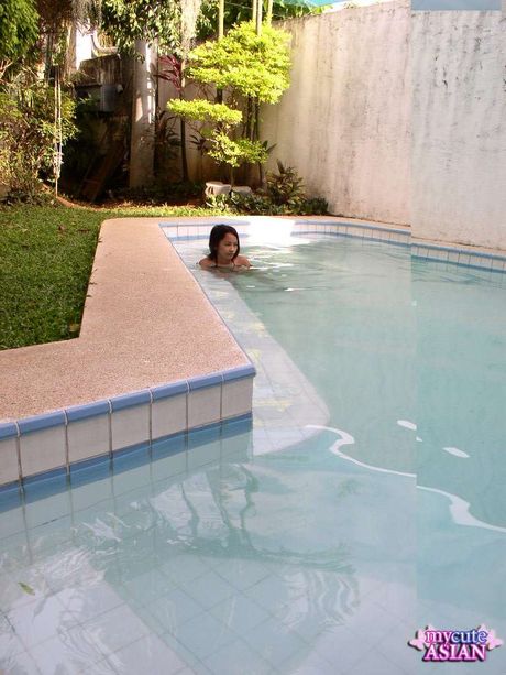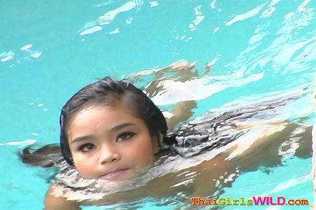 Thai Girls Wild: Tiny Thai babe Panni swimming nude outside at the pool