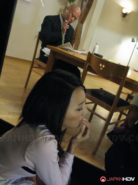 Japan HDV: Yui Asao shamelessly sucking her hubby where their guest can see them.